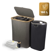 Wasmand 3 vakken – wassorteerder – 160L – met 3 uitneembare zakken – wasmand – wassorteerder met deksel – opvouwbaar – vernieuwde waszakken
