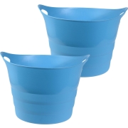 2x Flexibele emmer in het blauw. Deze flexibele kuip mand is lichtgewicht en beschikt over 2 handvatten, werkt ook prima als wasmand. Ideaal om te gebruiken in huis of in de tuin. Materiaal:…