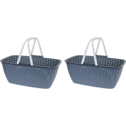 2x stuks donkerblauwe draag wasmand/mandje met witte handvatten/hengsel. Draag wasmand met handvatten gemaakt van stevig kunststof. Het formaat van deze mand is ongeveer 60 x 40 x 30 cm. Materiaal…