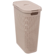 Smalle Wasmand met deksel Rotan - beige - gevlochten kunststof - 40 liter - 26 x 46 x 60 cm -