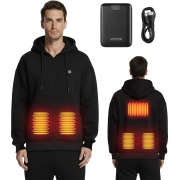 VEVOR Verwarmde Hoodie, Unisex, Verwarmde Pullover met 7,4V 16000mAh Oplaadbare Powerbank, 5 Verwarmingszones, 3 Temperatuurniveaus, 4-8 uur Warmte, voor Winterse Outdoor Camping, Zwart, S