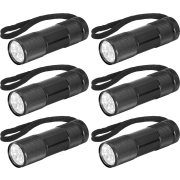6x stuks LED zaklamp gemaakt van aluminium in de kleur zwart. Lengte: 9 cm. Diameter: 2,6 cm. Met koordje om om de pols te doen. Deze zaklamp werkt op 3x AAA batterijen, deze zijn inbegrepen.…
