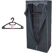 Set bestaand uit een mobiele kledingkast en kledinghangers. Ideale mobiele garderobekast om kleding in op te bergen, bijvoorbeeld op de camping of als extra kast op een zolder. De kast is…