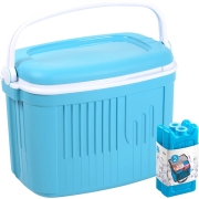 Koelbox in de kleur blauw met 2x koelelementen in de kleur kobalt blauw. De koelbox heeft een liter inhoud van 42 liter en het formaat is circa L56 x B37 x H42 cm. Het formaat van een koelelement…