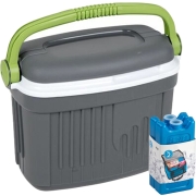 Koelbox in de kleur grijs met 2x koelelementen in de kleur kobalt blauw. De koelbox heeft een liter inhoud van 8 liter en het formaat is circa L36 x B21 x H28 cm. Het formaat van een koelelement…