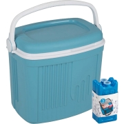 Koelbox in de kleur blauw met 2x koelelementen in de kleur blauw. De koelbox heeft een liter inhoud van 25 liter en het formaat is circa L30 x B22 x H39 cm. Het formaat van een koelelement is…
