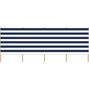 Strand/camping windscherm gestreept wit/blauw 300 cm x 120 cm. De hoogte van het doek is ca. 120 cm, de hoogte van de stokken is ca. 150 cm en de diameter van de stokken is ca. 1,2 cm. De 4…