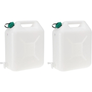 EDA Watertank/jerrycan - 2x - 20 liter - voor de camping - waterjerrycans - transparant - met kraant -