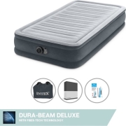 Intex Luchtbed - 1 Persoons - 99 x 191 x 33 cm - Grijs - Met ingebouwde pomp, Hoeslaken Zwart en Reparatieset