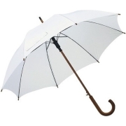 Automatische paraplu 102 cm doorsnede in het wit - grote paraplu met houten handvat