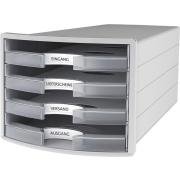 HAN ladekast Impuls Kleur grijs met transparante lades. Afmetingen buitenkant: 280 x 367 x 235mm. Afmetingen lade: 240 x 325 x 37mm. Beschikt over 4 open…