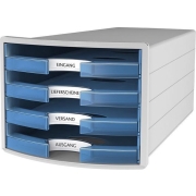 HAN ladekast Impuls Kleur grijs met blauw transparante lades. Afmetingen buitenkant: 280 x 367 x 235mm. Afmetingen lade: 240 x 325 x 37mm. Beschikt over 4…