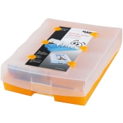 Ladekast systeem voor op het bureau of in de kast. Het materiaal is van antistatisch polystyrol. De systeembox heeft een lichtgrijze ombouw met blauwe transparante of heldere transparante laden. De…