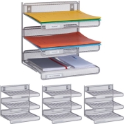 Relaxdays 4x brievenbak bureau - metaal 3 vakken - sorteerrek brieven - brievenhouder