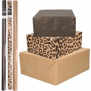 6x Rollen kraft inpakpapier/kaftpapier pakket bruin/zwart/panterprint 200 x 70 cm -