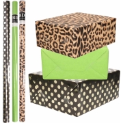 6x Rollen kraft inpakpapier/folie pakket - panterprint/groen/zwart met gouden stippen 200 x 70 cm -