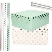 Luxe folie inpakpapier/cadeaupapier - Set van 4x stuks - mintgroen/zilveren stip - 200 x 70 cm -