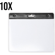 Zwarte badgehouders, 10 stuks. Deze badgehouders / naamkaarthouders worden veelvoudig gebruikt op beurzen, kinderfeestjes en evenementen. Formaat: ongeveer 11,5 x 9,5 cm. Let op: exclusief…