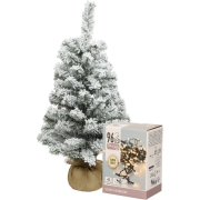 Mini kerstboom - besneeuwd - H60 cm - met kerstverlichting - warm wit - kunstboom -