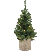Kunstboom/kunst kerstboom groen 60 cm met verlichting en naturel jute pot. Mini kerstbomen groen in jute zak met verlichting inclusief timer 60 cm en inclusief plantenpot. Diameter pot: 14 cm.…