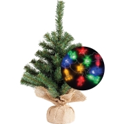 Kunstkerstboom met jute zak op batterijen - 50 micro LED lampjes - 90 cm Deze sierlijke kunststof LED kerstboom is geschikt voor gebruik binnenshuis en brengt de kerstsfeer…