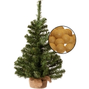 Mini kunst kerstboom groen - met verlichting bollen lichtsnoer geel - H60 cm -
