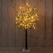 Lichtboom met dennen voor gezellige kerstdecoratie. Breng warmte en sfeer in huis of tuin met deze sfeervolle lichtboom. De dennen met sneeuw metalen boom is voorzien van 64 klassiek warm wit LED-…