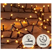 Deze clusterverlichting heeft 960 warm witte LED-lampjes op een lichtsnoer van 12,5 meter. De verlichting is voorzien van een timer die instelbaar is op 8 of 16 uur, en een dimmer voor het…