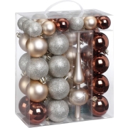 47x stuks kunststof kerstballen 4-6 cm bruin/parel/zilver met piek. Complete set van matte en glanzende kerstballen van kunststof inclusief bijpassende piek. Kerst versiering/decoratie…