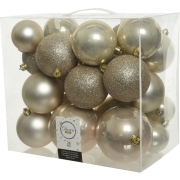 Kerstballen - 26x st - champagne - 6-8-10 cm - kunststof - kerstversiering -