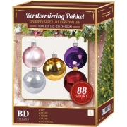 Kerstboomversiering kerstballen pakket gekleurd voor een kerstboom van ongeveer 120 cm. Een compleet pakket met kunststof kerstballen in diverse kleuren. U ontvangt in totaal 88…