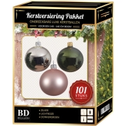 101 stuks Kerstballen mix zilver-roze-groen voor 150 cm boom -