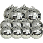 Grote kerstballen 12x stuks in de vorm van discobollen/discoballen in de kleur zilver. Deze disco kerstballen zitten in een set van 8 stuks van 6 cm en 4 stuks van 8 cm. Materiaal: kunststof met…