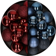 Kerstballen 60x stuks - mix donkerrood/donkerblauw - 4-5-6 cm - kunststof -