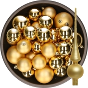 Kerstversiering kunststof kerstballen met piek goud 6-8-10 cm pakket van 45x stuks -