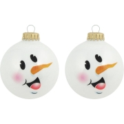 16x Luxe glitter witte glazen kerstballen sneeuwpop 7 cm - Kerstversiering/kerstdecoratie wit