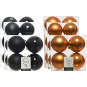 Kerstversiering kunststof kerstballen mix zwart/cognac 6-8-10 cm pakket van 44x stuks -