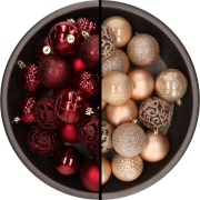 Kunststof kerstballen 74x stuks donkerrood en lichtbruin 6 cm -