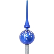 Luxe blauwe glazen piek met zilveren glitter sterren 28 cm -