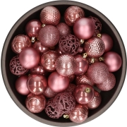 Bellatio Decorations kerstballen - 37x st - oudroze - 6 cm - kunststof - kerstversiering -