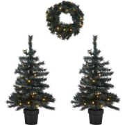 Wehkamp Home 2 verlichte kerstbomen en krans Fraser (h95 x Ø55 cm)