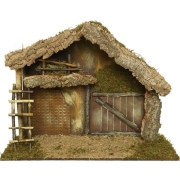 Kerststal van hout en mos zonder figuren/beelden. Deze kerststal heeft een formaat van ongeveer L50 x B27 x H32 cm en is geschikt voor kerstfiguren van ongeveer 12 cm (niet ingebrepen). Materiaal…