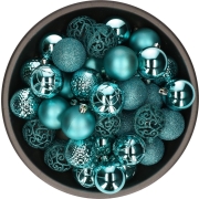 Bellatio Decorations kerstballen - 37x st - turquoise blauw - 6 cm - kunststof - onbreekbaar -