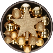 Bellatio Decorations kerstballen set - 34-dlg - goud - incl. piek - kunststof -