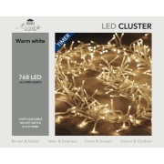 Kerstverlichting clusterverlichting LED verlichting 768 lampjes warm wit 4,5 meter IP44. Zwart lichtsnoer met 768 warm witte lampjes. Het lichtsnoer heeft een automatische timer met aan/uit…