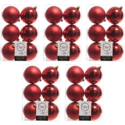 30x Kerst kerstballen 8 cm kunststof mat/glans. Set van 30x rode onbreekbare kerstballen met gouden ophanglintjes. De ene helft is glanzend en de andere helft zijn matte kerstballen. Kerst…