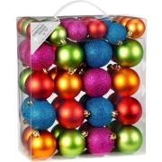 Pakket met 50x stuks gekleurde kerstballen van 4-6 cm. Deze kleurrijke set van kerstballen in verschillende maten is perfect voor het feestelijk versieren van je kerstboom. De ballen variëren in…