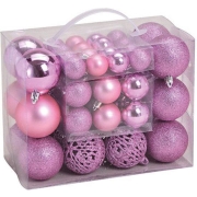 Kerstballen - set 50x st - roze - mix 3, 4 en 6 cm - kunststof - pakket -