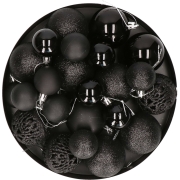Kerstballen - set 50x st - zwart - mix 3, 4 en 6 cm - kunststof - pakket -
