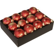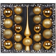 Set 19-delig met glazen kerstballen en piek goud -